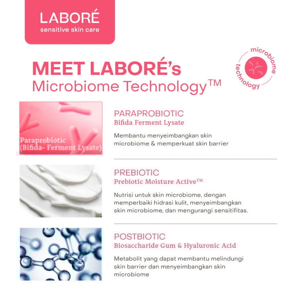 LABORÉ Sensitive Skin Care GentleBiomeTM Barrier Repair Serum the 1st* Skin Barrier Serum for Sensitive Skin! Berfungsi tidak hanya memperbaiki skin barrier tetapi juga memperkuat skin barrier tolerance. Melalui rangkaian formulasi dan uji bersama skin expert local & global terhadap 200+ orang wanita dengan kulit sensitif.