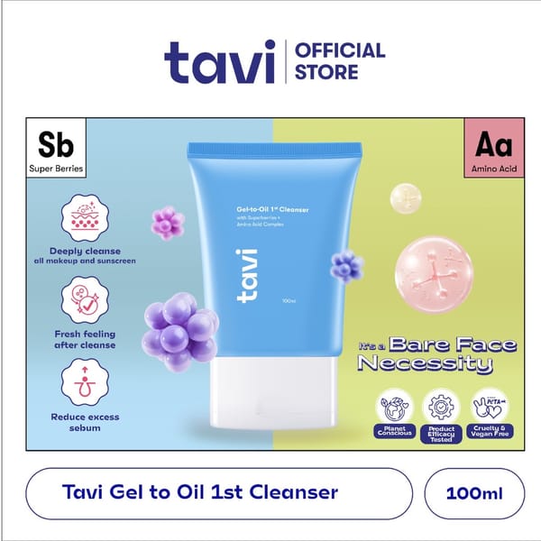 TAVI Gel to Oil 1st Cleanser Twin Pack (100ml) - Make up Remover | Menghapus Make up Waterproof & Menghilangkan Komedo